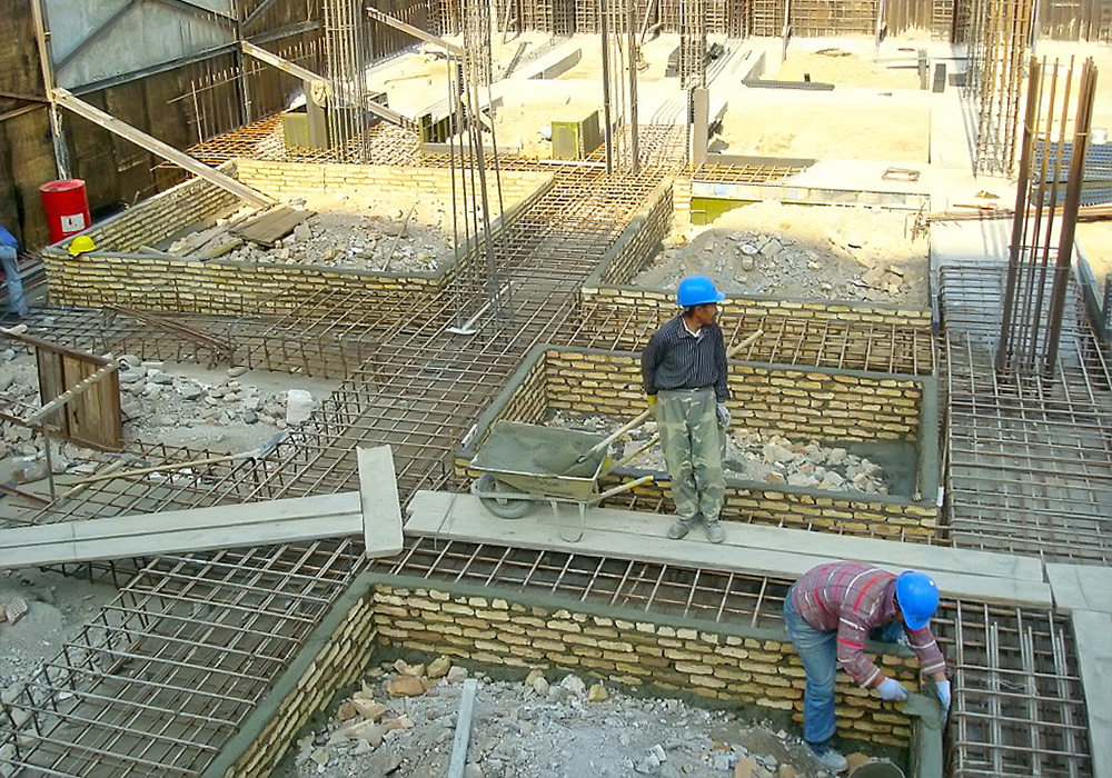 - Concrete foundation pouring an construction of a concrete structure resistant to earthquake