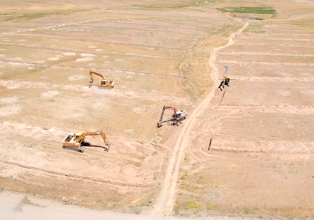 - Design and construction of access roads along pipes and drains, and on the sandy areas between the fields, 380 km